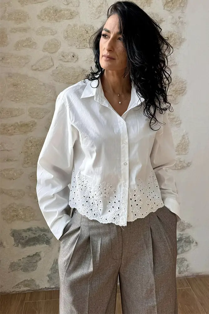 Ce chemisier blanc intemporel est la pièce idéale pour une allure chic et décontractée. Confectionné en coton léger, il assure un confort optimal tout en restant respirant.