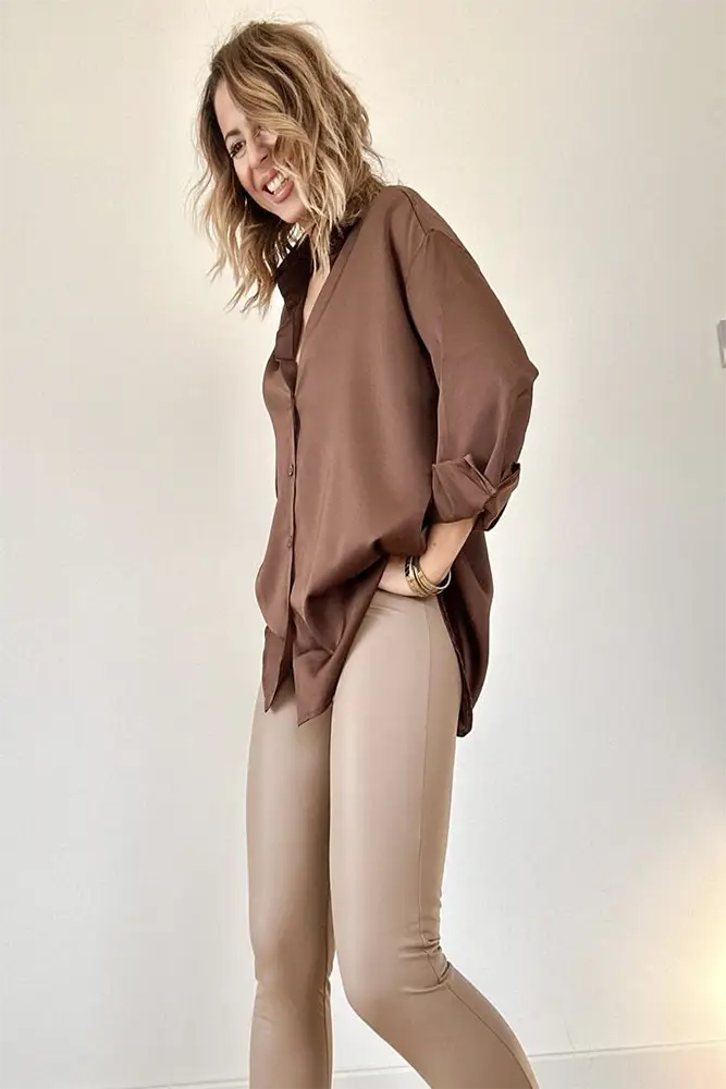 Le chemisier satin Ebene peut être portée de manière formelle avec un costume, décontractée avec un jean, ou associée à des tenues d’extérieur. La couleur marron offre une touche de chaleur et de polyvalence, s’harmonisant bien avec des nuances neutres et d’autres couleurs complémentaires.
