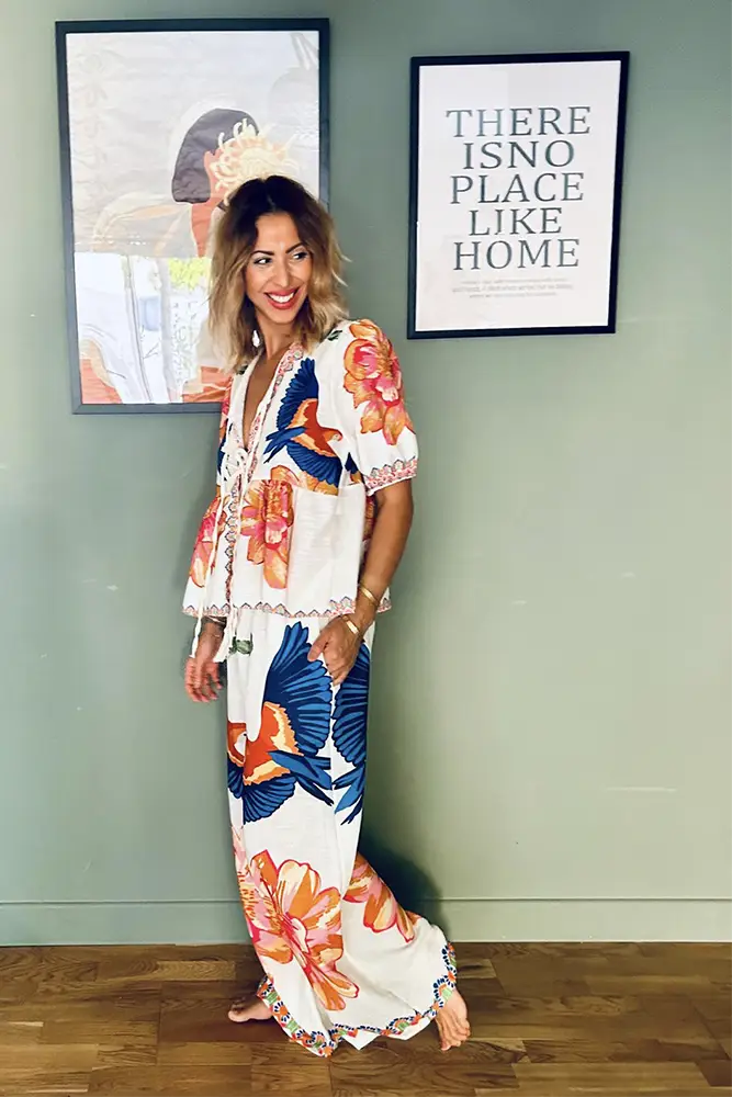 Cet ensemble chemise et pantalon est à la fois élégant et original, parfait pour une occasion habillée ou décontractée. La combinaison du blanc et d’une couleur vive, comme le bleu ou l’orange, crée un contraste saisissant et tendance.