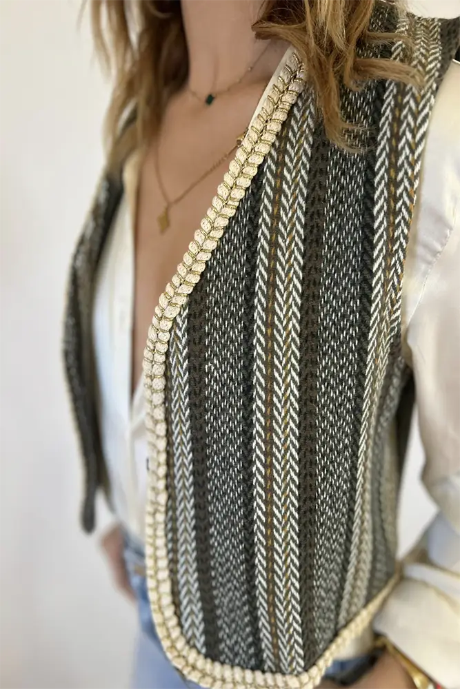 Bien que le gilet en matières nobles soit souvent associé à des occasions formelles ou élégantes, il peut également être porté de manière décontractée pour ajouter une touche de luxe à une tenue décontractée. Il peut être superposé sur une chemise habillée avec un pantalon pour un look professionnel ou associé à un jean pour une tenue plus décontractée mais élégante.
