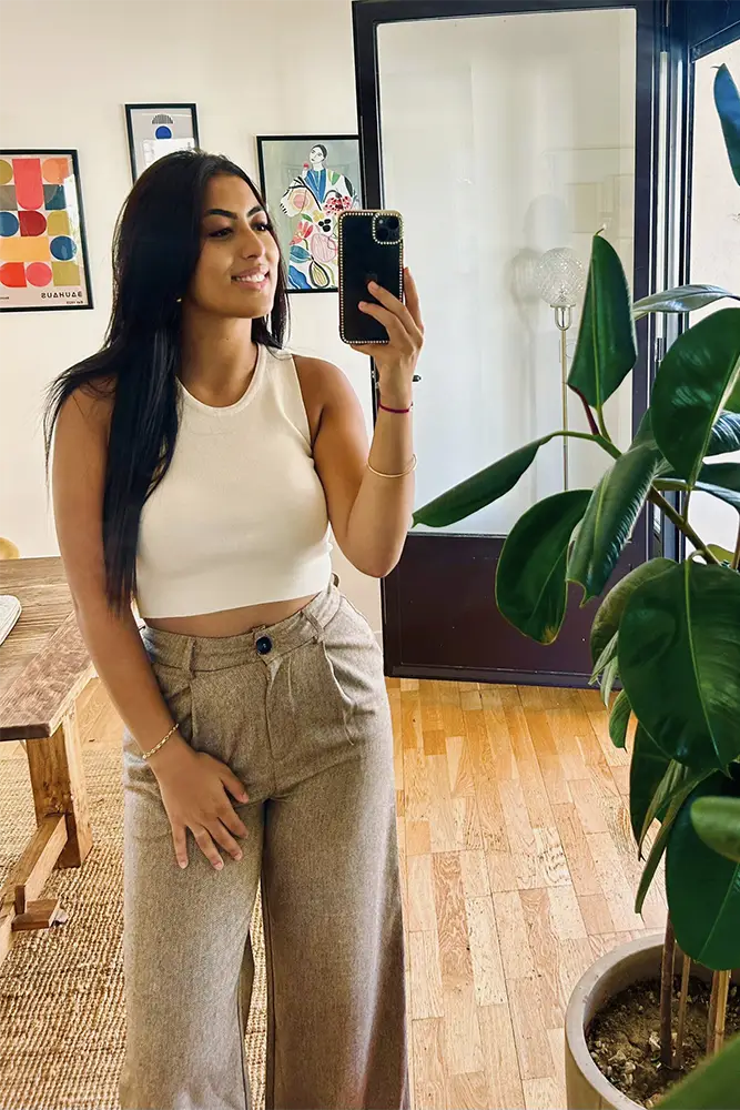 Ce pantalon est conçu dans une laine de haute qualité, se décline dans une teinte beige douce et naturelle, apportant une touche lumineuse et élégante à votre garde-robe. Avec sa coupe large et fluide, il allonge visuellement la silhouette tout en garantissant un confort optimal et une grande liberté de mouvement. La taille haute de ce pantalon structure et affine la silhouette pour un look moderne et sophistiqué.