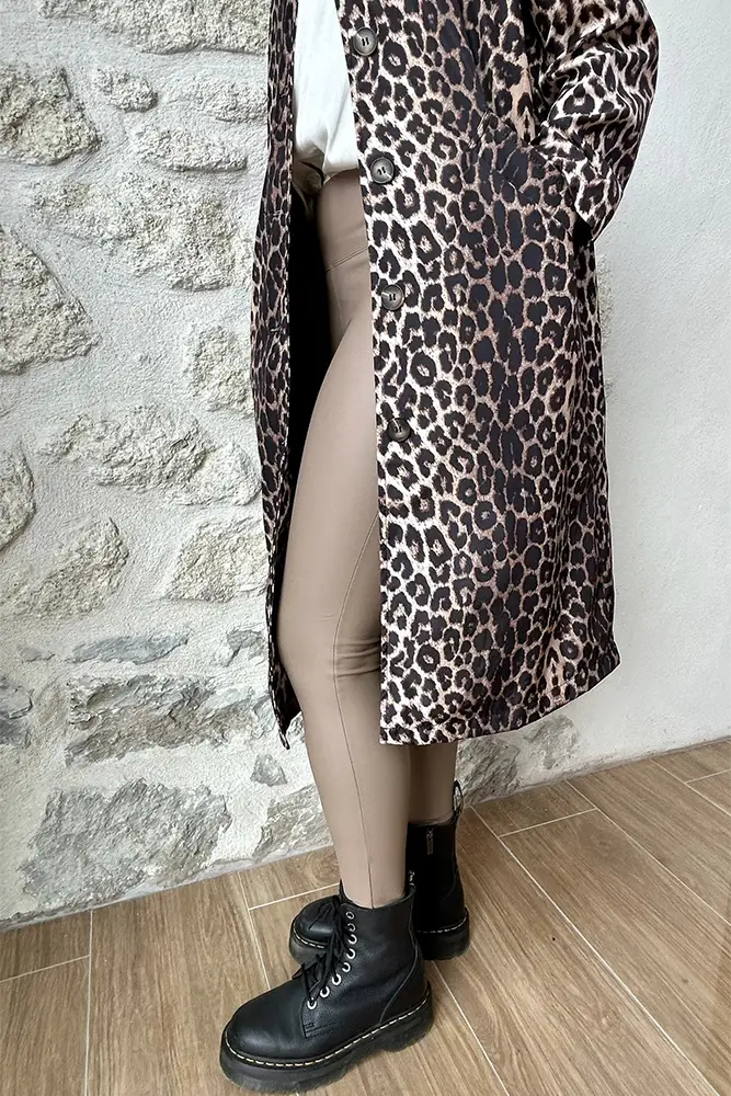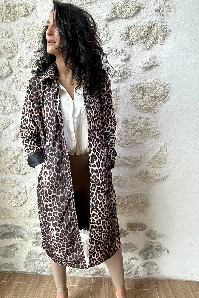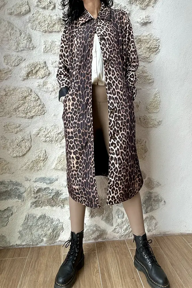 Ce trench léopard est une pièce audacieuse et tendance qui allie style classique et motif animalier. Conçu dans un tissu léger, il offre un confort optimal et une coupe flatteuse qui sublime la silhouette. Le motif léopard, aux teintes dorées et brunes, apporte une touche sauvage et chic, parfaite pour ceux qui aiment se démarquer.