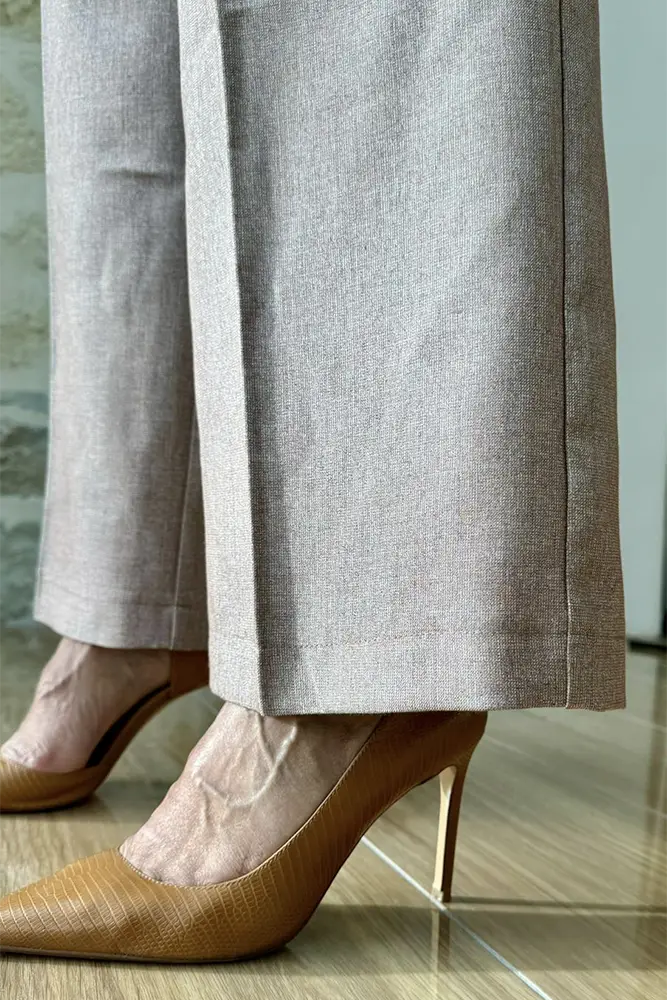 Ce pantalon est l’incarnation du chic intemporel et moderne. Avec sa coupe fluide et sa taille haute flatteuse, il élance la silhouette tout en offrant un confort optimal. Ses plis délicats et sa finition soignée lui confèrent une allure élégante.