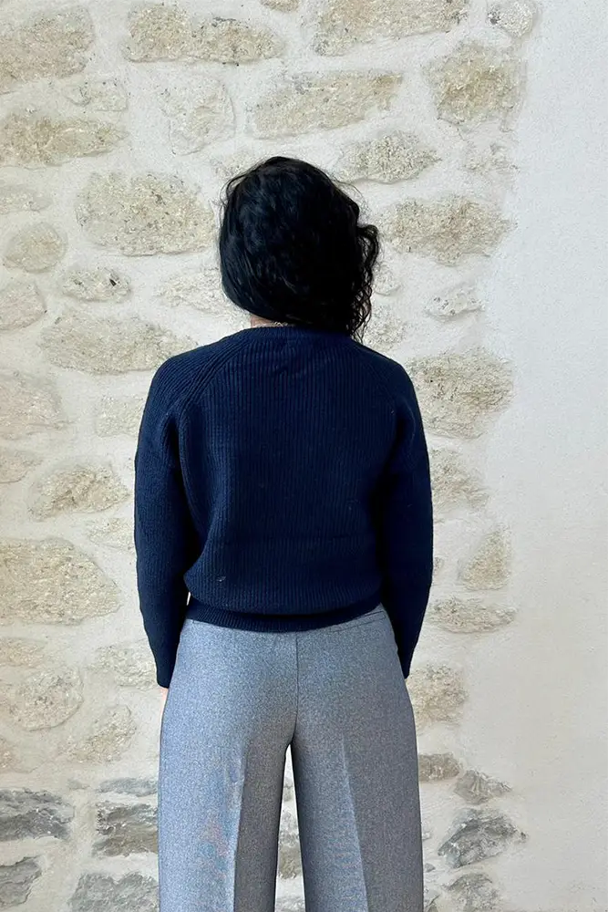 Ce pull col V bleu marine est un basique incontournable de toute garde-robe. Confectionné dans un tricot doux et confortable, il allie élégance et simplicité. Le col en V apporte une touche de sophistication tout en mettant en valeur votre visage. Parfait pour un look aussi bien décontracté que formel.