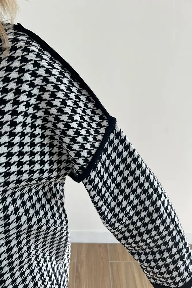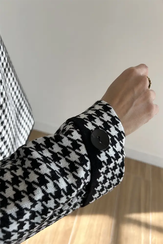 • Motif pied de poule : Le motif pied de poule est un motif classique en chevrons, en noir et blanc.
