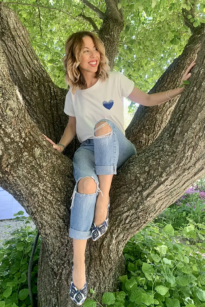 Le t-shirt cœur dégradé bleu peut être porté avec un jean pour une tenue décontractée ou avec une jupe pour une soirée habillée. Associé à des bijoux assortis, il ajoute une touche de sophistication et de féminité à n’importe quelle tenue.