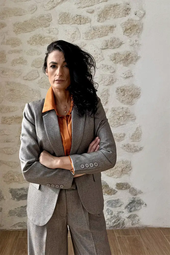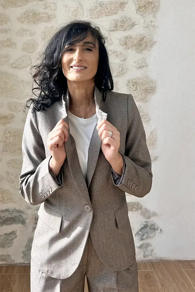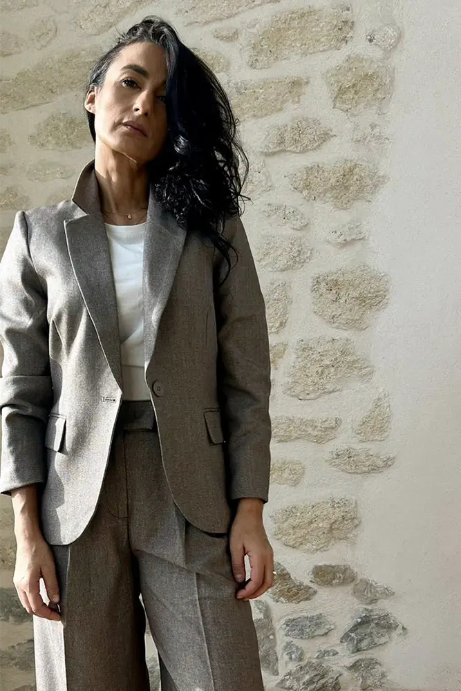Ajoutez une touche de sophistication à votre tenue avec cette veste de tailleur Choco, conçue pour compléter parfaitement le pantalon et le top Choco.
